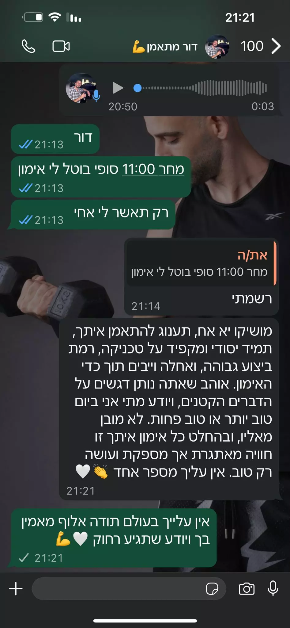 ניתן לקבוע אימון במכון הכושר או אצלכם בבית.